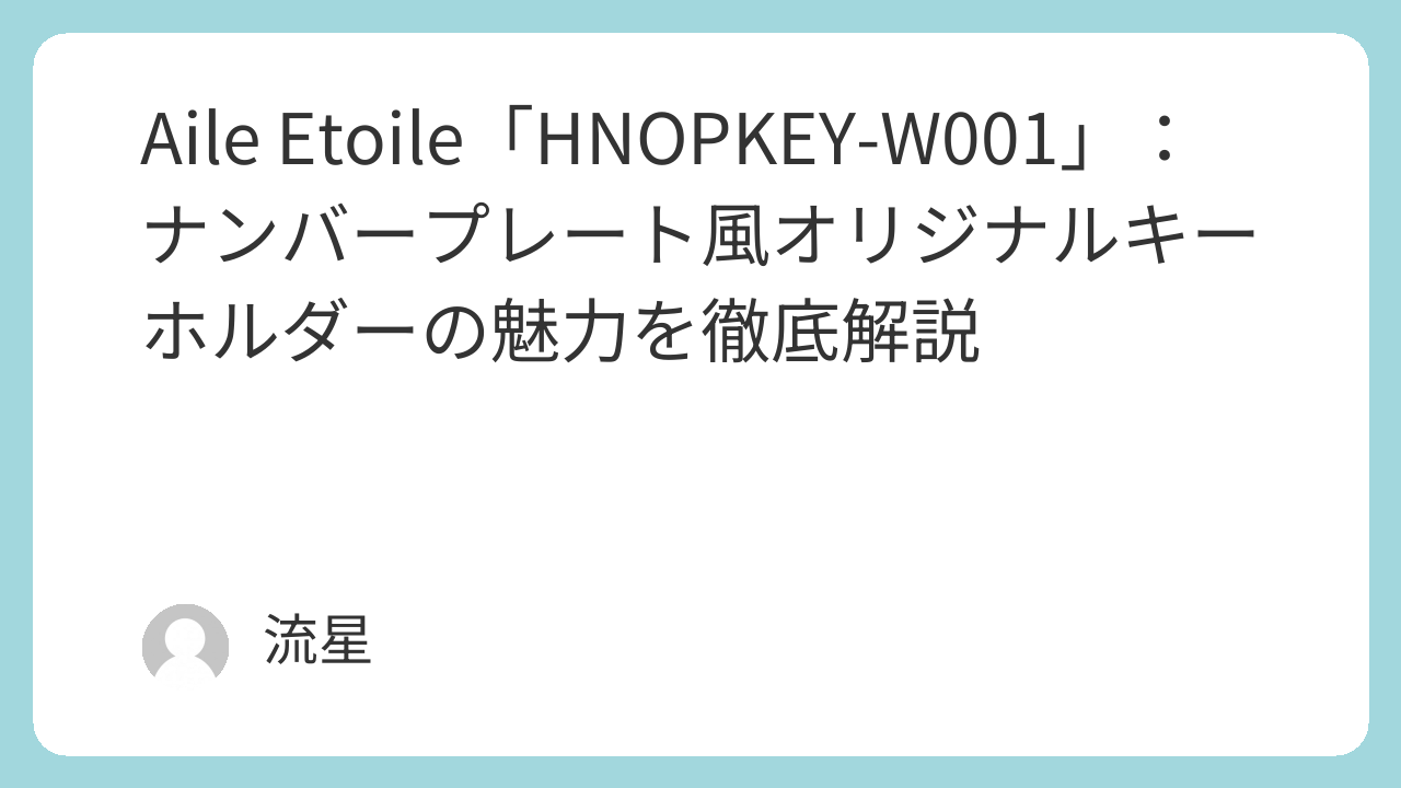 自分だけの車の “顔” をいつも携帯したい──そんな想いをかなえる、Aile Etoile(エール・エトワール)のナンバープレート風キーホルダー「HNOPKEY-W001」。この記事では、商品の特徴、使い方、選ぶ際のポイントから、実際に手に入れたときの満足感やプレゼント用途、メンテナンス方法まで、専門的な視点も交えて徹底的に紹介します。